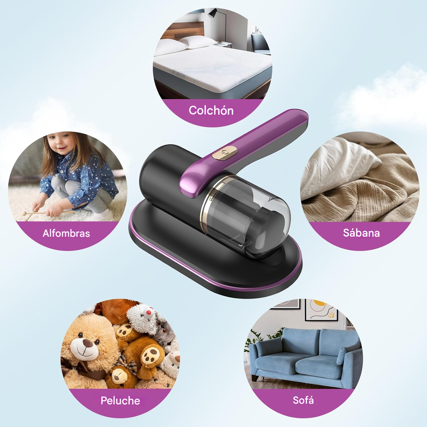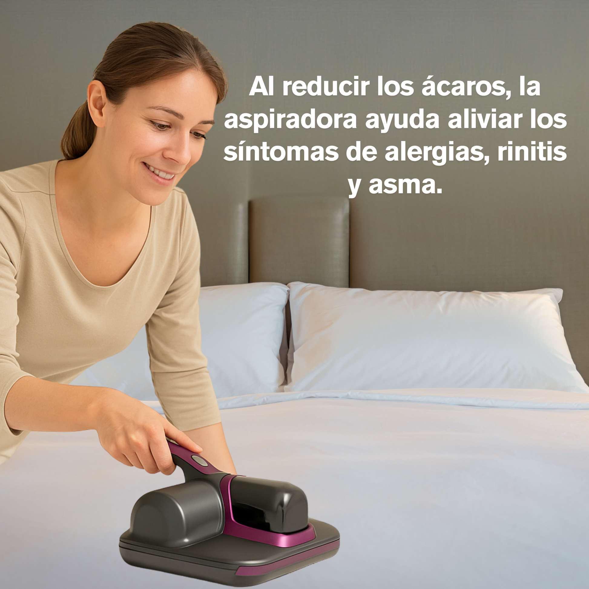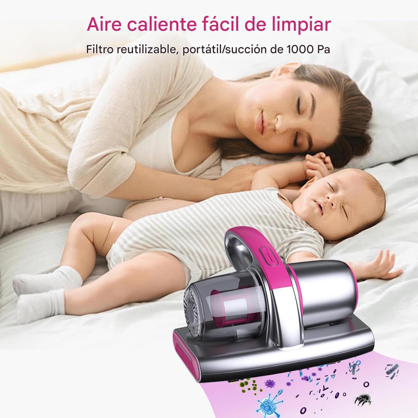El aspirador elimina hasta el 99.9% de ácaros y bacterias, mejorando la salud y el descanso.