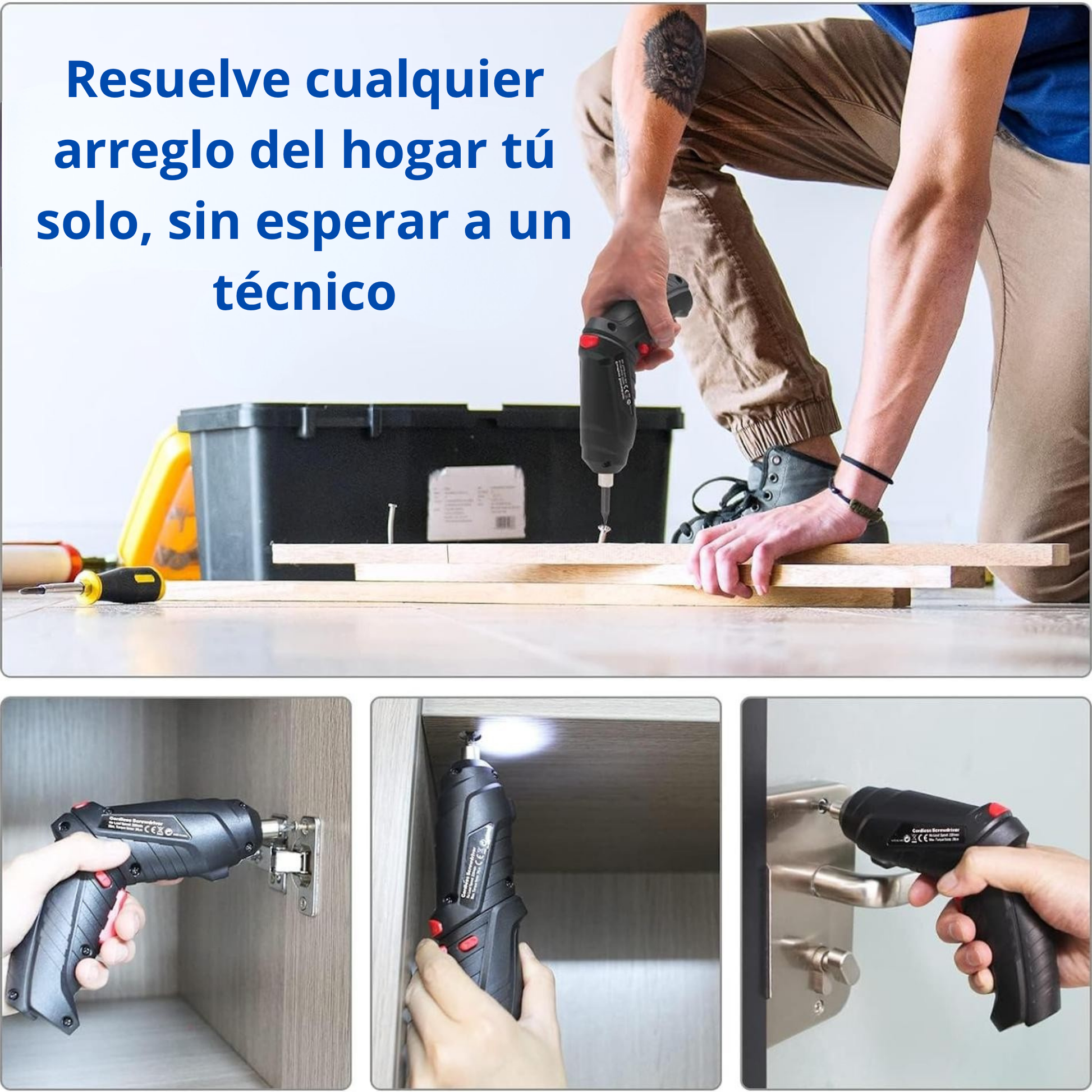 Este destornillador maneja la perforación y fijación en áreas pequeñas con una eficiencia sorprendente, haciéndote olvidar los días de lucha con herramientas manuales.
