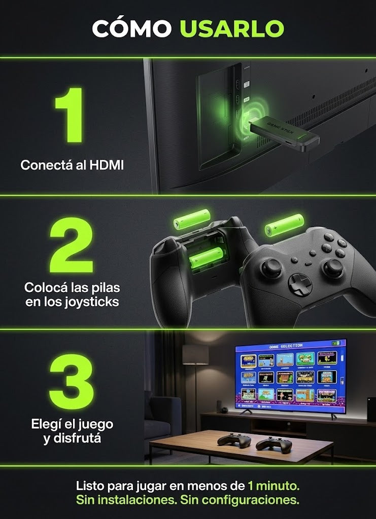 Diversión Doble al Instante con 2 Joysticks Inalámbricos¡ Compartir la emoción es lo más "cool"! Jugar con amigos o familiares es súper fácil y divertido desde el primer momento.