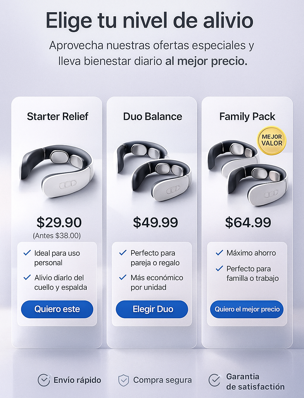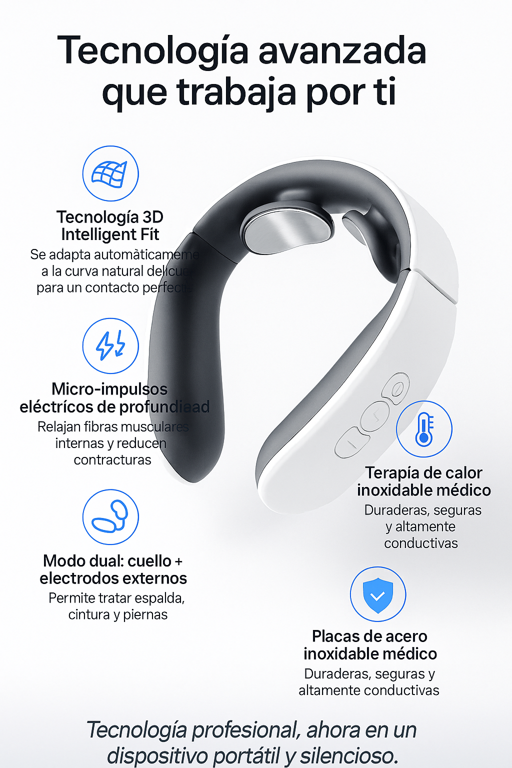 Puede contribuir a aliviar tensión muscular, rigidez y molestias por postura o estrés. Sin embargo, si tienes dolor crónico severo o condiciones médicas, es recomendable consultar con un profesional antes de usar estimulación eléctrica.